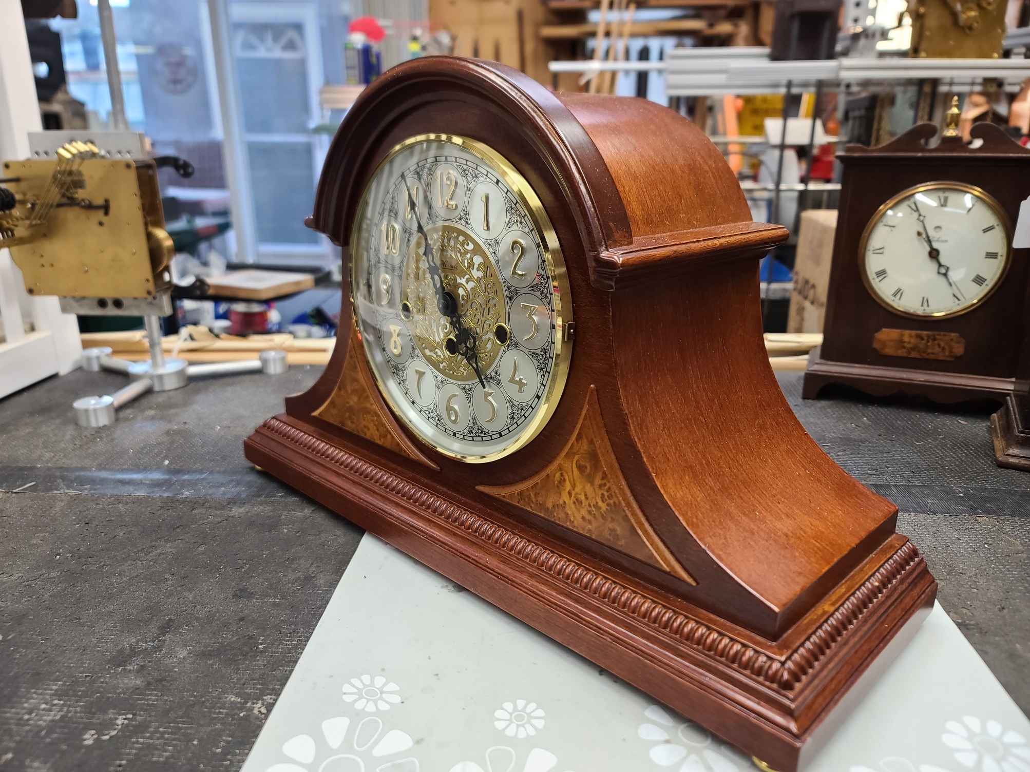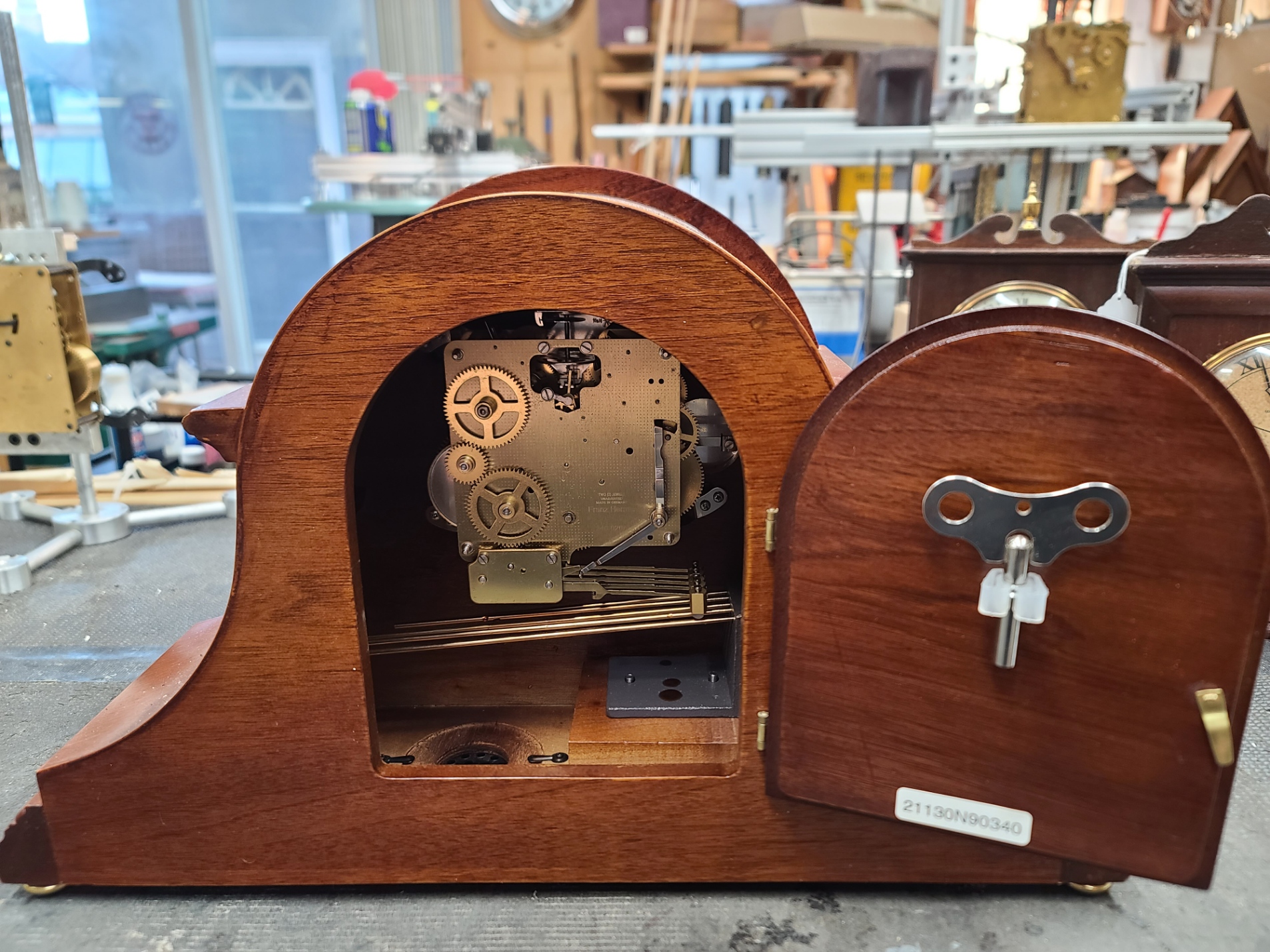 Pristine Condition: This Hermle Amelia Mantel Chiming Mantel Clock is in very clean and complete condition, accompanied by its key, a testament to its well-maintained legacy.