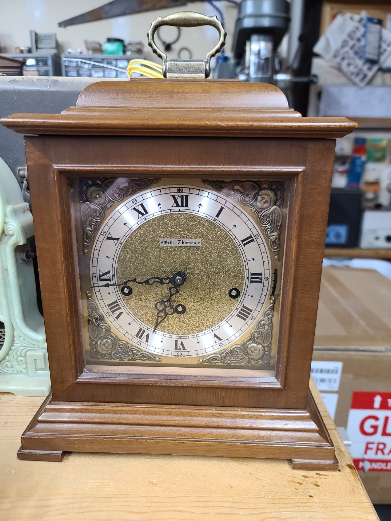 Pristine Condition: This Seth Thomas Legacy V is in very clean and complete condition, accompanied by its key, a testament to its well-maintained legacy.
