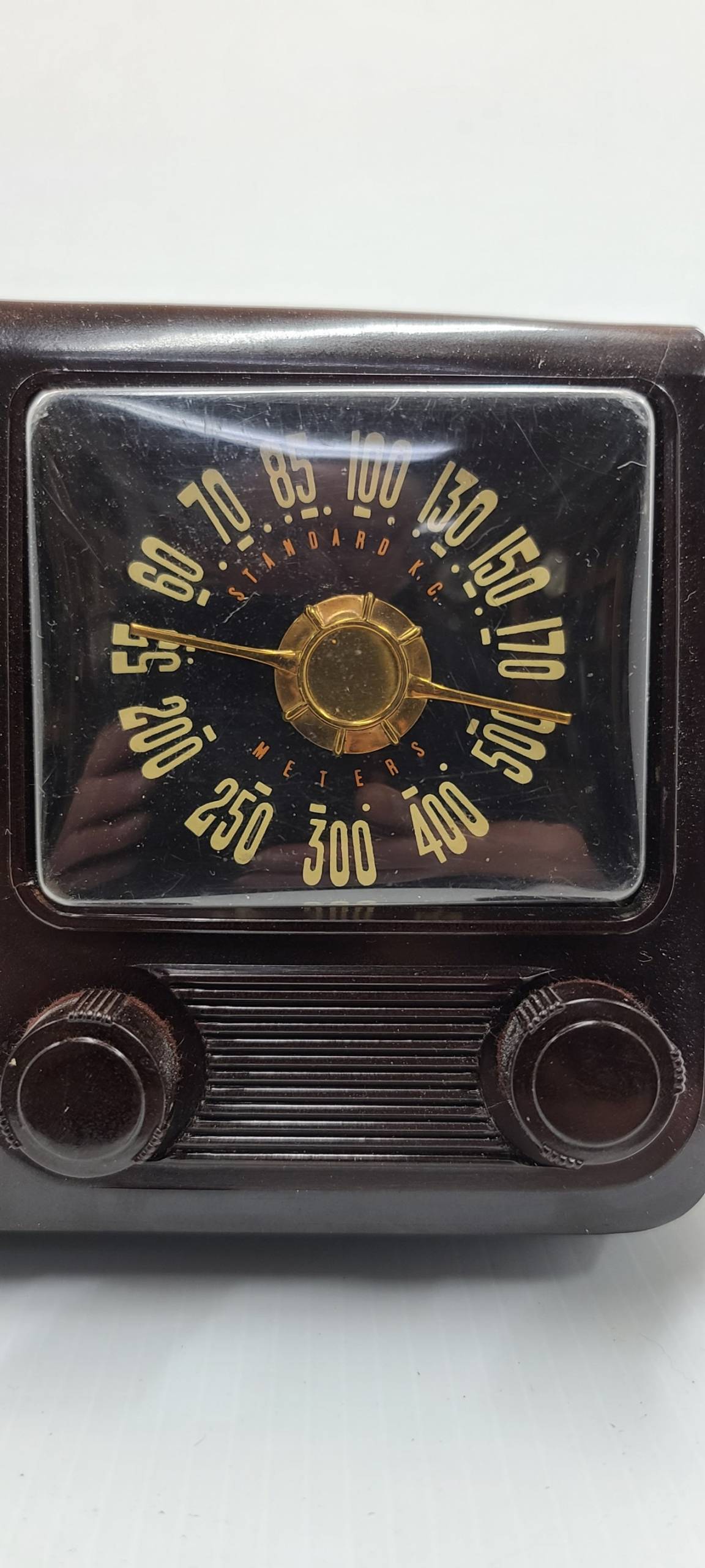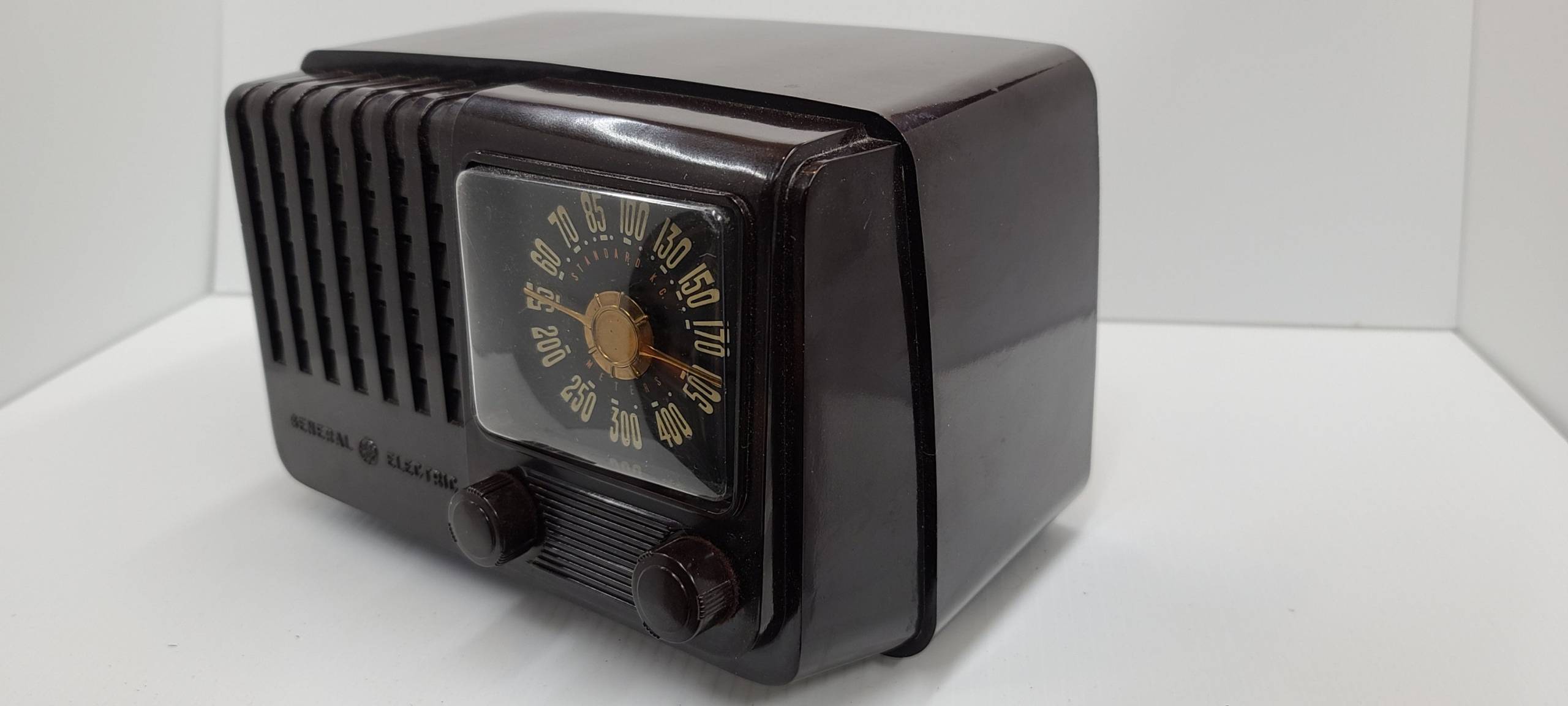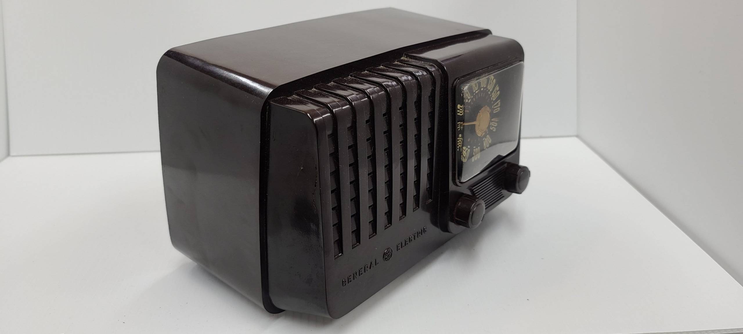 Classic Design: The bakelite cabinet of this General Electric Model 110 radio boasts a rich and warm finish, making it a standout piece of decor in any room.